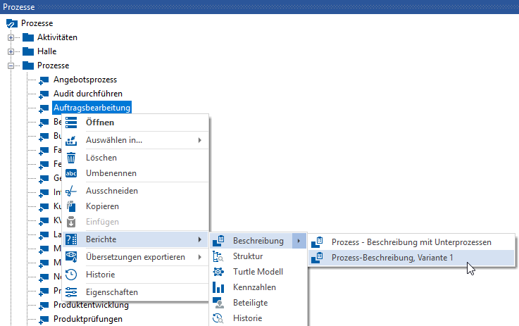 It is possible to integrate important reports, such as the process description, into the WebModel and call them up directly from there.